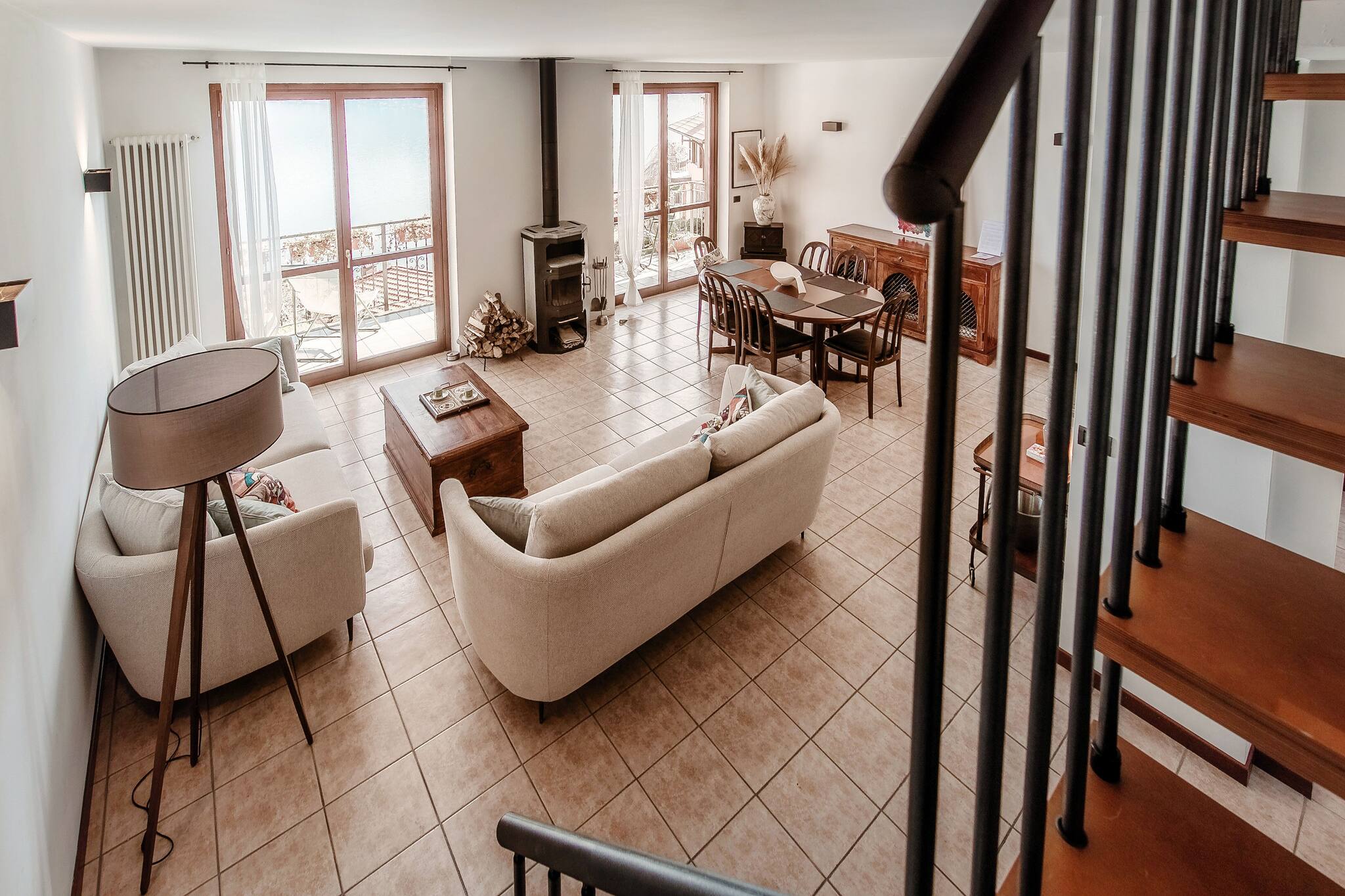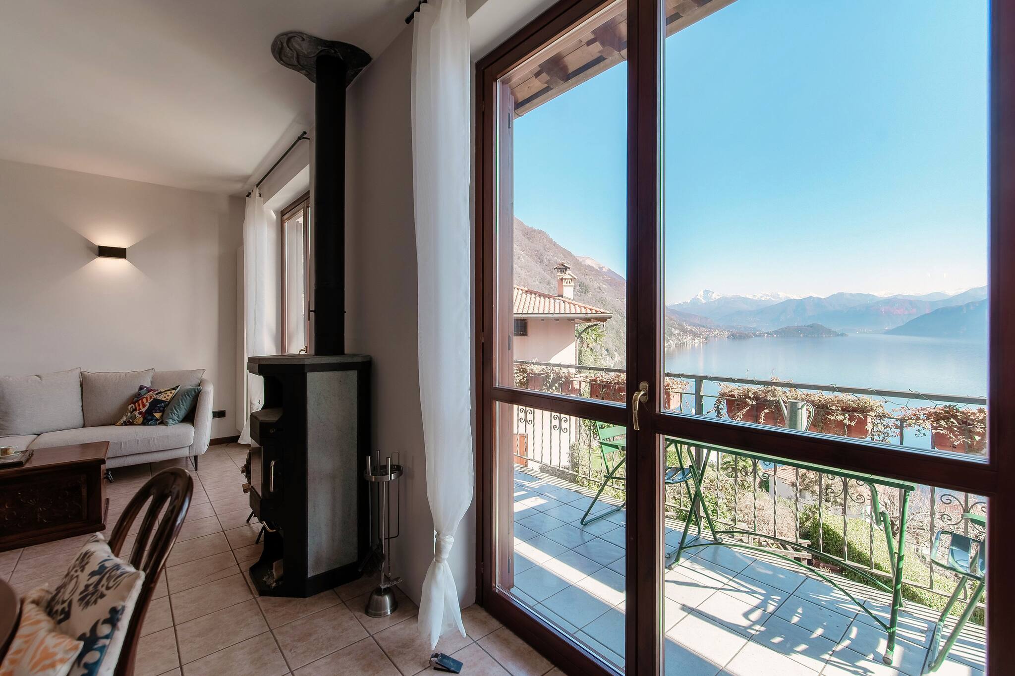 La vista lago è lo sfondo perfetto per i vostri pranzi e le cene in salotto.