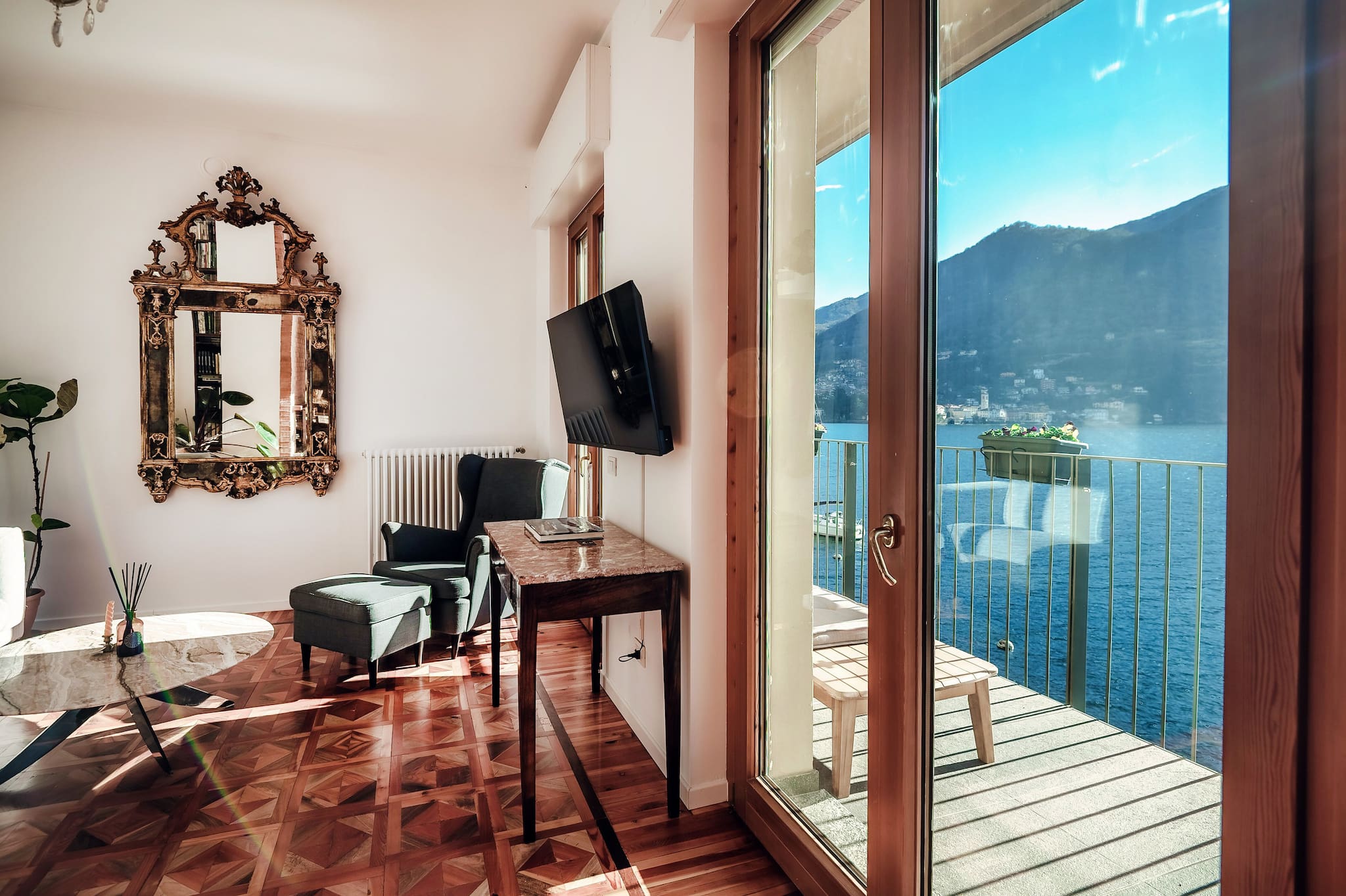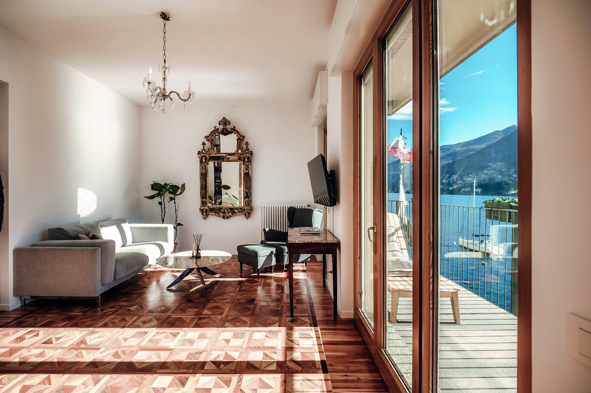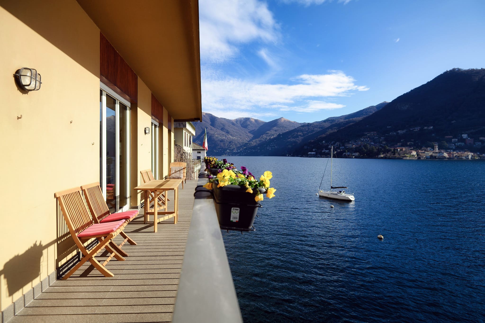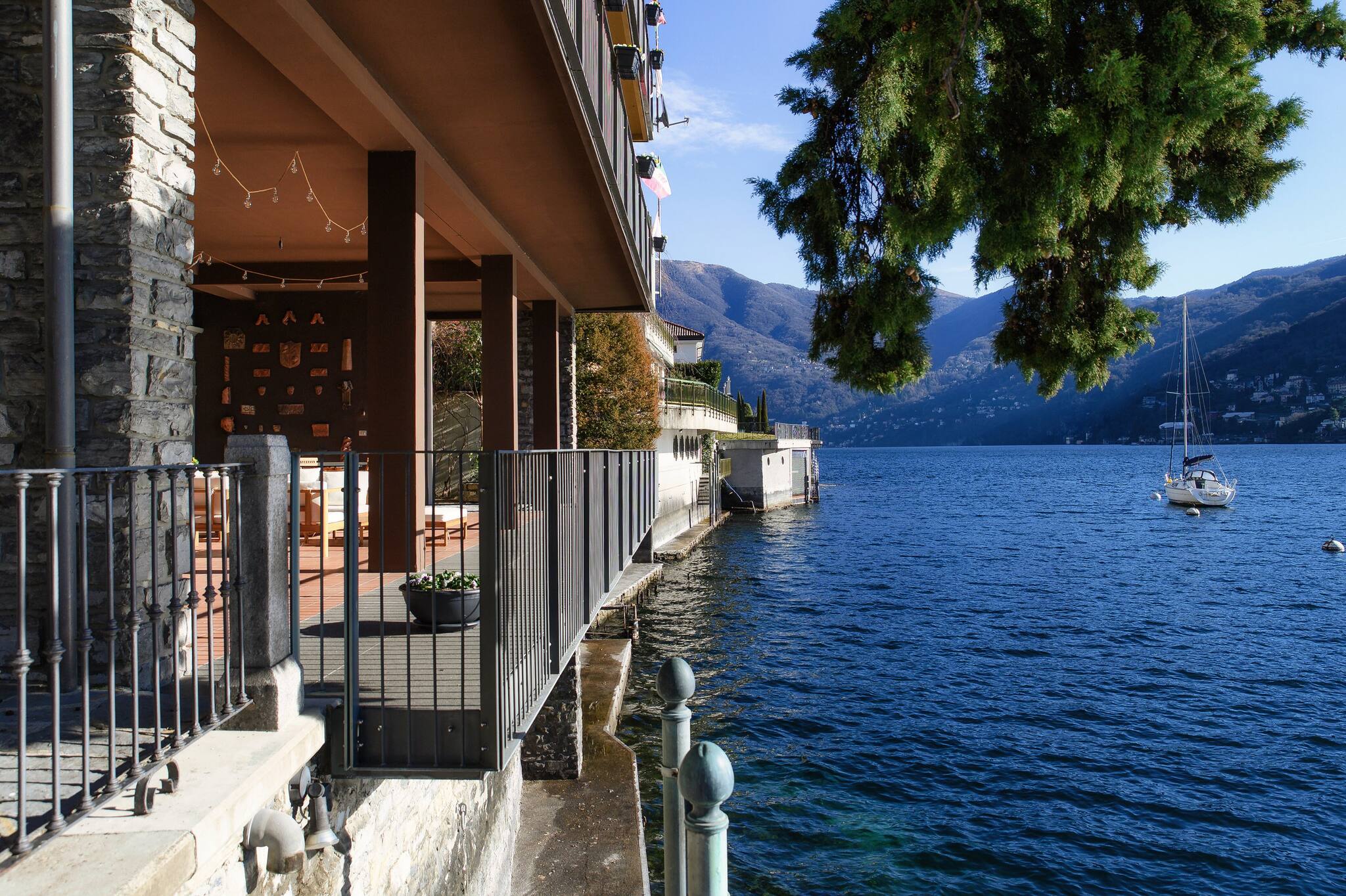 Splendido appartamento situato all'interno di una villa ristrutturata sulle sponde del Lago di Como, a Moltrasio. Elegante e raffinato, l'appartamento ti offre la possibilità di passare le tue vacanze in totale tranquillità con la tua famiglia o i tuoi amici. L'ampio patio sottostante permette pranzi e cene all'aperto, immersi in un'atmosfera suggestiva. L'accesso diretto al lago offre la possibilità di arrivo in villa via barca.