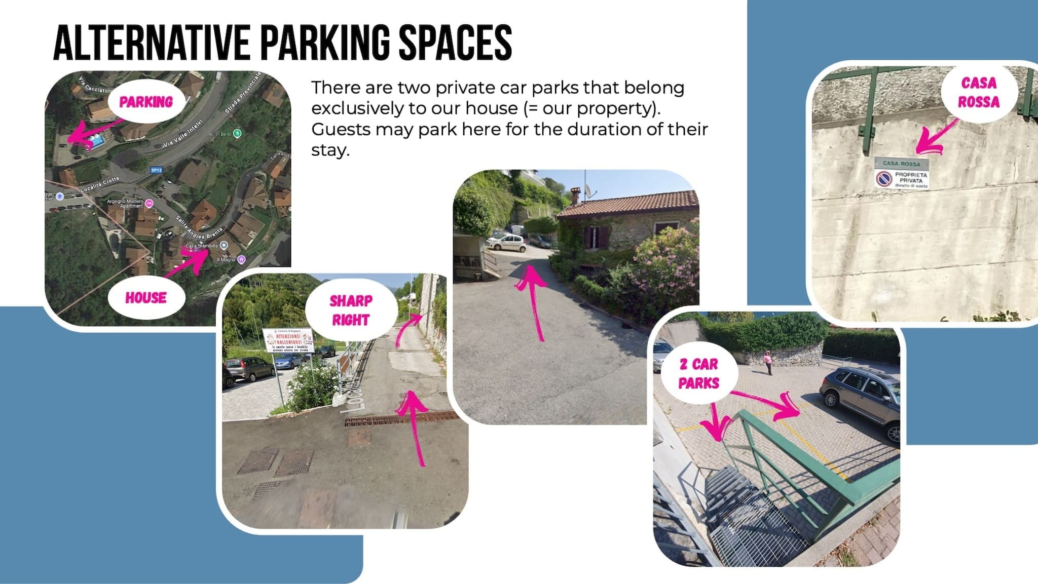 Easy to reach by car, the property has a private parking space right in front of the entrance.