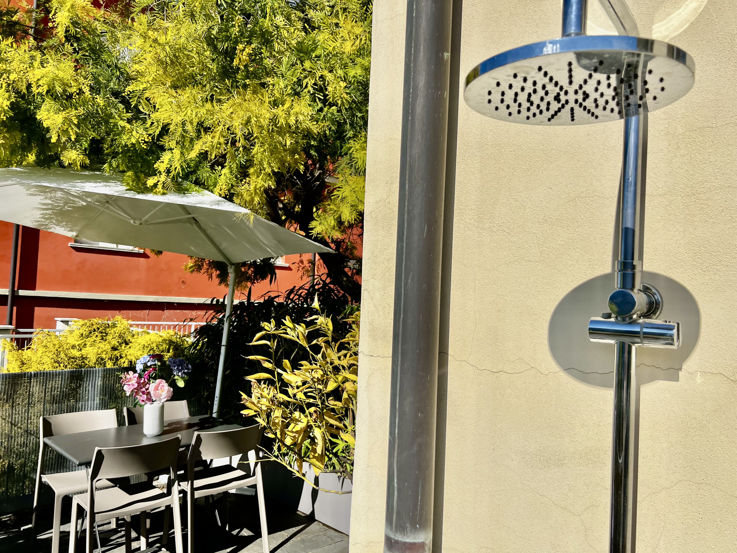 Asómate a tu pequeño paraíso. Como se muestra en las fotos, la terraza está completamente amueblada con mesa de comedor, sillas y tumbonas. Una cortina retráctil te permite elegir entre el sol mediterráneo pleno o una sombra fresca.